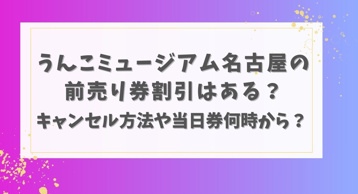 うんこミュージアム名古屋の前売り券割引はある?キャンセル方法や当日券何時から?